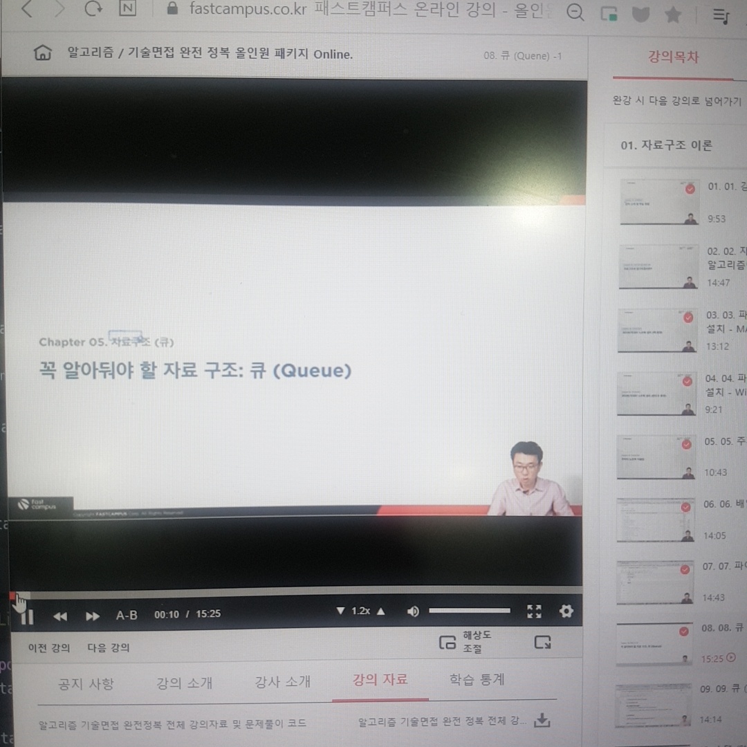 오늘은 큐에 대해서 강의를 들었습니다.