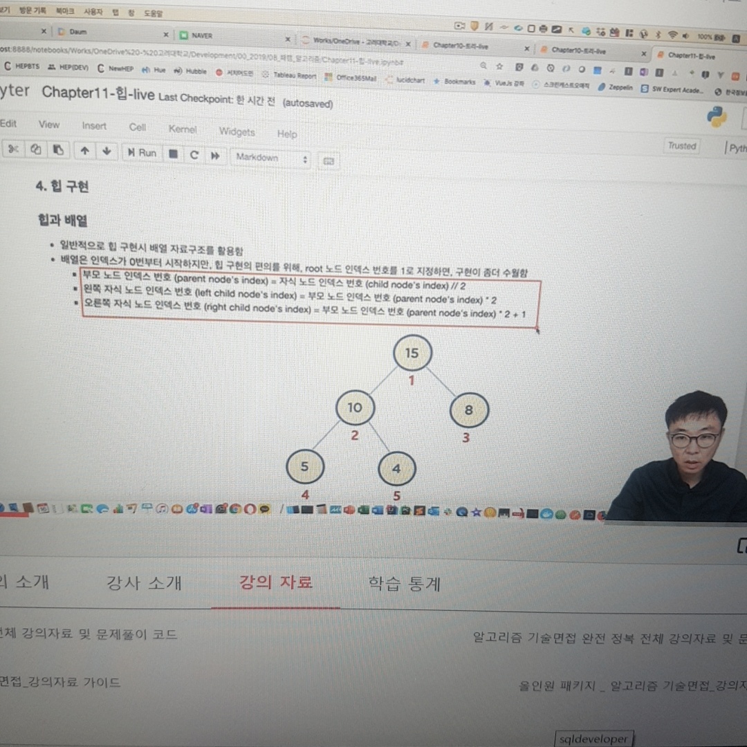 - 부모 노드 인덱스 번호 = 자식 노드 인덱스 번호 //2