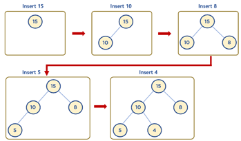 - 삽입한 노드가 부모 노드의 값보다 클 경우 부모 노드와 삽입한 노드 위치를 바꿈