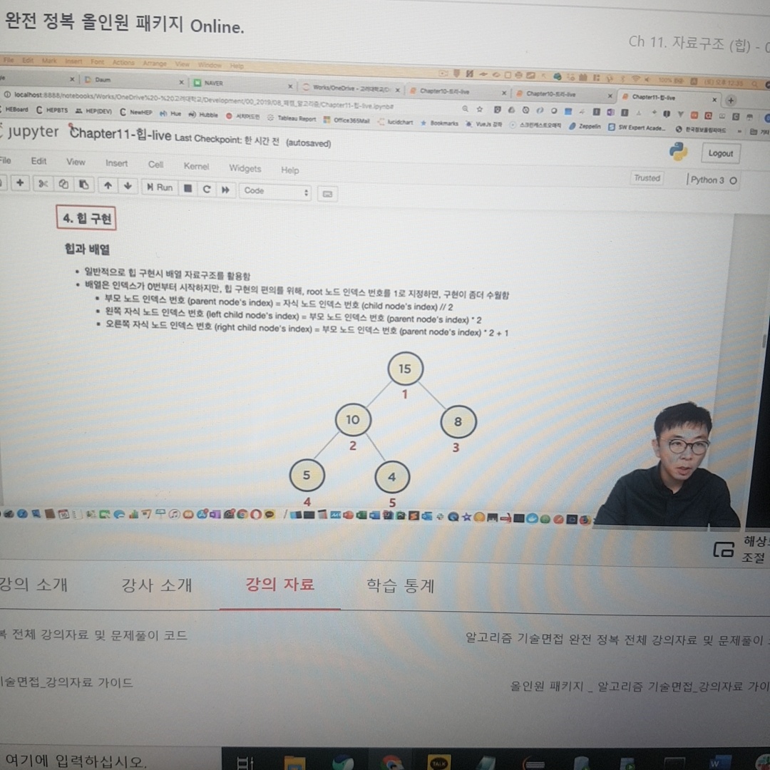 -> 일반적으로 힙 구현 시 배열 자료구조를 활용