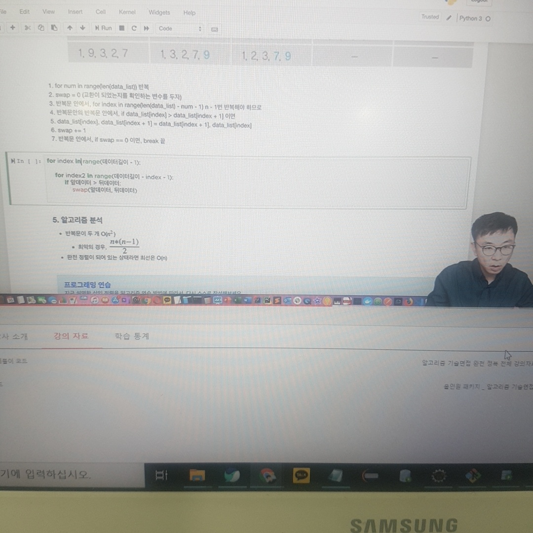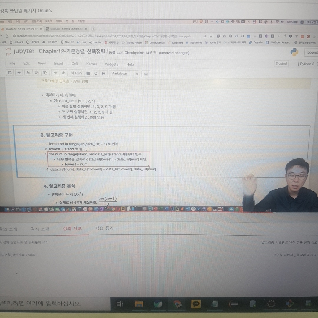 - 내부 반복문 안에서 data_list[stand] < data_list[num - 1] 이면,