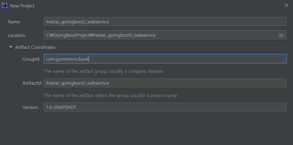 2. GroupId & ArtifactId 설정