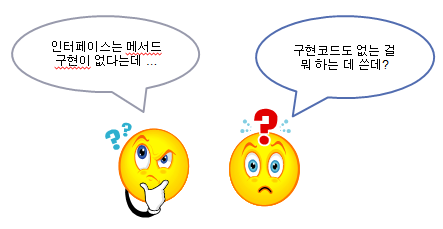 - 자바 8 부터 디폴트 메서드(default method)와 정적 메서드(static method) 기능의 제공으로 일부 구현 코드가 있음